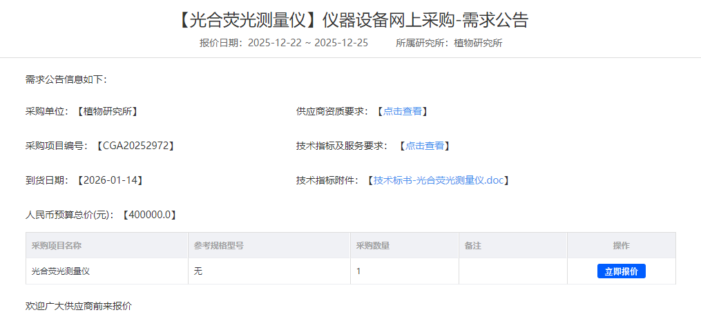 详情可登录中国科学院网上采购平台http://zkcg.cas.cn/,通过采购项目名称或采购项目编号进行搜索。