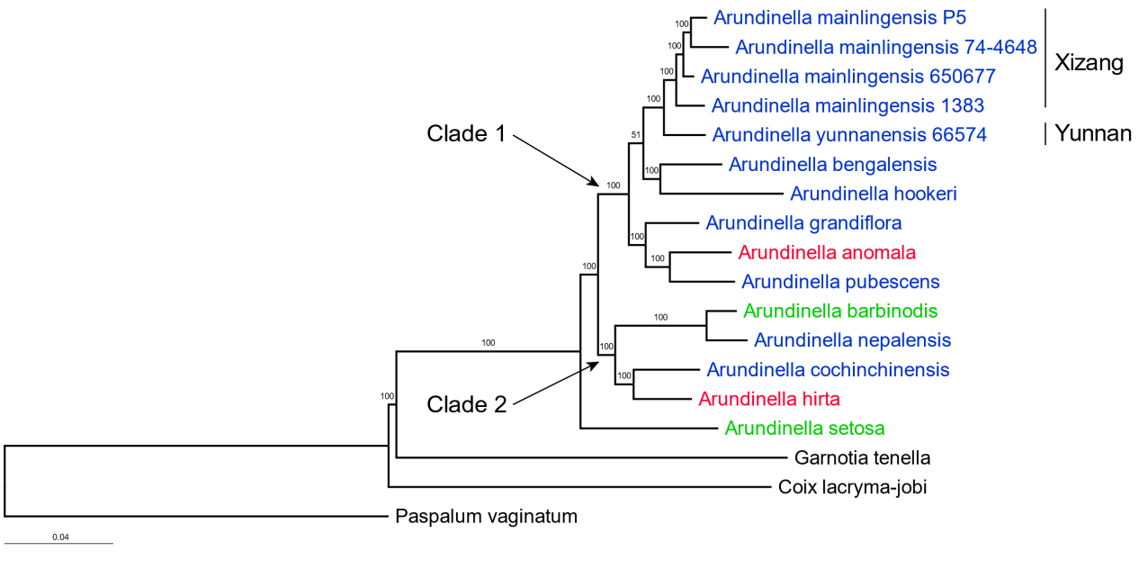 然而,故事并没有结束。孙必兴在描述云南野古草时,同时引证了西藏波密、米林的 3 号标本(青藏队 1460、74-4650、74-4648)作为副模式,他错误地将西藏的居群也归入其中,扩大了该物种的范畴。本研究发现,被归入 “云南野古草” 的西藏居群,与云南居群存在显著形态和遗传分化: