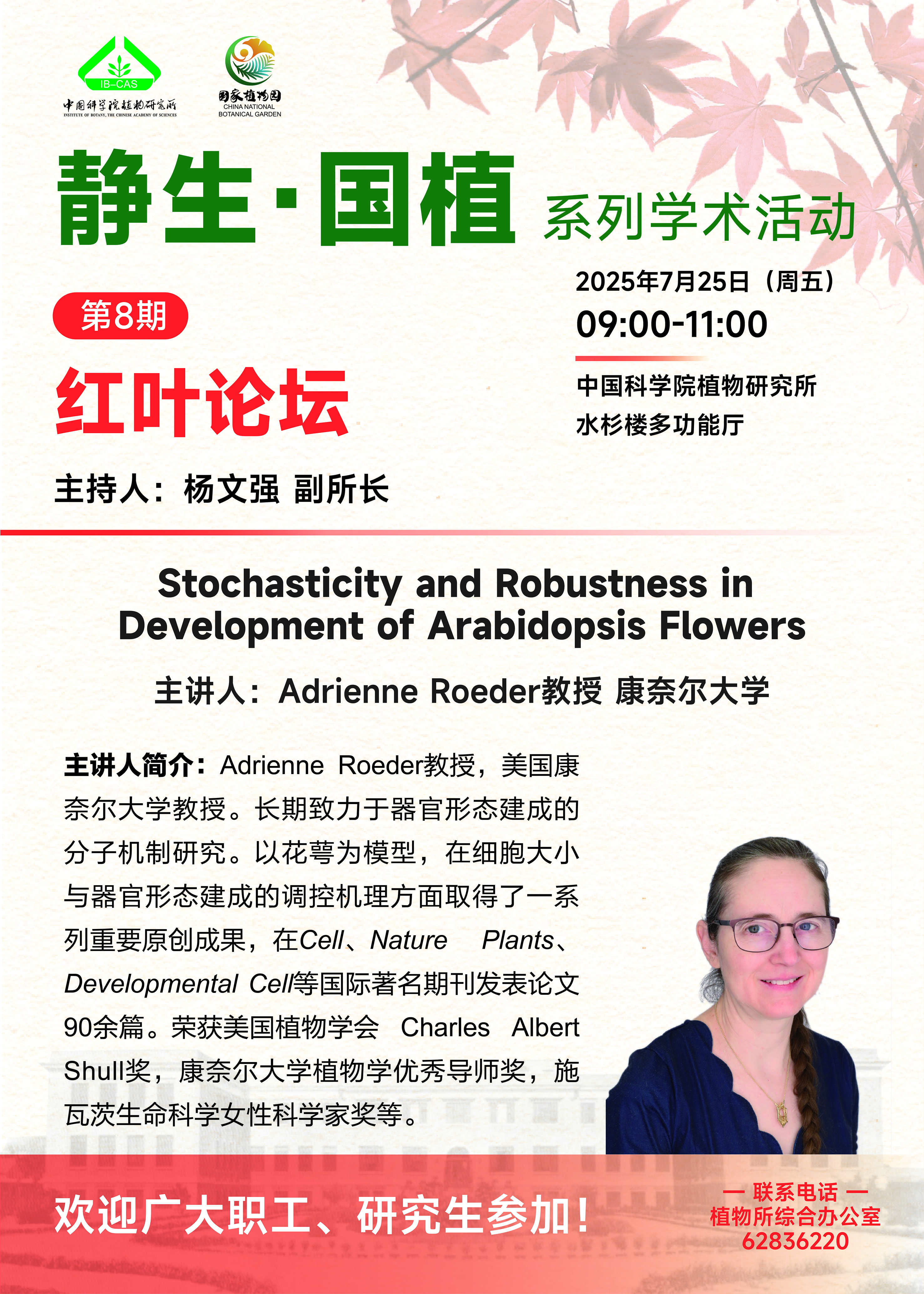 7月25日(周五)“静生·国植”—第8期红叶论坛 主讲人:Adrienne Roeder教授 康奈尔大学