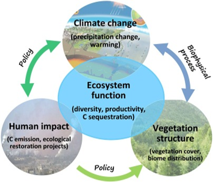 气候变化、人类活动、植被结构与生态系统功能的相互关系