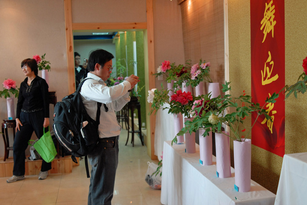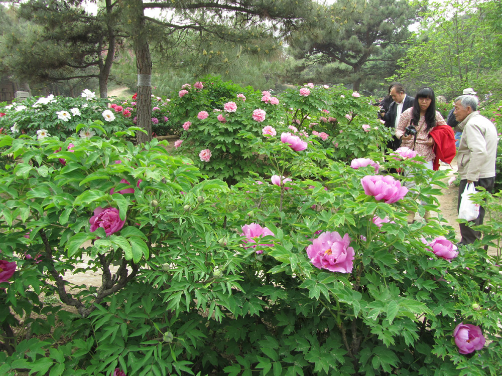 中国科学院植物研究所北京植物园一早就设计好了“节目”,迎接市民朋友的检阅。连续五年的春节牡丹展已经让中科院植物园在京城人民心目中留下了很好的印象,今年清明开始的新一轮牡丹展更是吊足了人们的胃口,憋足了劲儿等待“五一”植物园露地牡丹的盛放。众望似乎比武则天的号令更管用,植物园10多年来引种的中原牡丹、西北牡丹、日本牡丹、美国牡丹……近千个品种争先恐后赶在“五一”期间显露自己的风姿,连花期较晚的部分美国品种也露出了笑脸。在游客服务中心和科普展示中心开展的“我心中最爱的牡丹评选”活动将牡丹展推向了高潮,每天近300个牡丹品种与游客见面,收到了1000多张投票,最终“海黄”、“首案红”、“岛锦”三个品种荣登三甲。互动评选活动极大地调动了人们的积极性,提供了大量的评议和意见,植物园为评选获奖者颁发了奖品。此次牡丹展集中展示了世界范围内的牡丹名品,包括中国传统名贵牡丹品种“姚黄”、“魏紫”、“豆绿”,双色品种“二乔”、“岛锦”,牡丹中唯一的三倍体“首案红”,难得见到的黄色品种“海黄”等,让游客们大开眼界。植物园牡丹资源圃在此次展览中发挥了巨大作用,为牡丹品种的互动评选提供了大量材料。牡丹展吸引了众多的“回头客”,如前期参加过牡丹春季修剪的京源学校师生们,她们还带来了绘画班的学生,要为牡丹出画展。