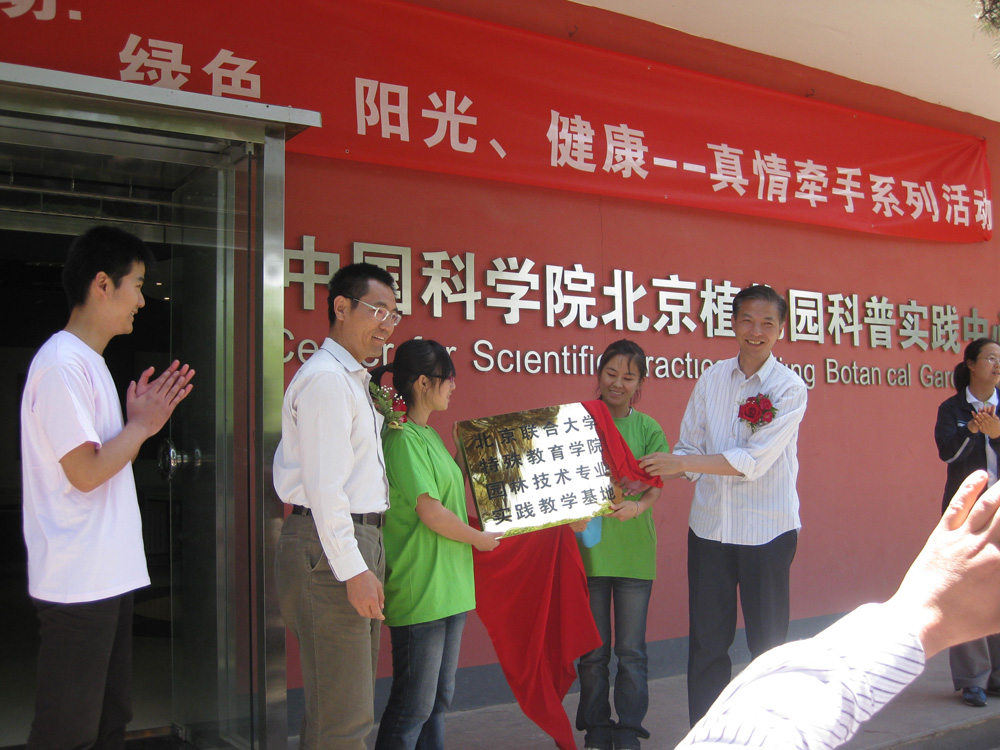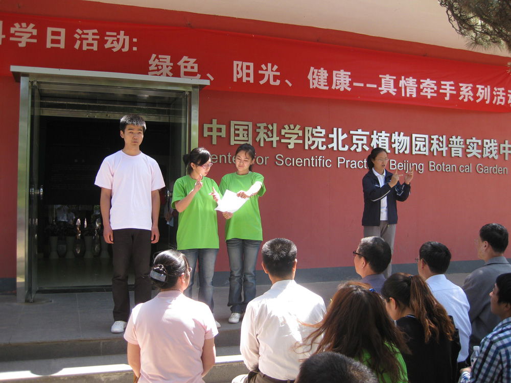 5月21日,植物所举办了2011年科技周及第七届中国科学院公众科学日活动。中国残疾人联合会副主席、中国盲人协会主席李志军、北京市科学技术协会副主席田文、北京市科协学会部副部长王晖、北京市社会工作委员会综合处处长王小平、北京大学生命科学学院教授饶广远、北京联合大学特教学院副院长韩萍、李启隆等领导和部分新闻媒体的嘉宾出席了此次活动。植物研究所副所长葛颂、植物分子与发育生物学研究中心主任林金星、植物所北京植物园执行主任刘公社参加了活动并为部分获奖者颁发了奖品和纪念品。刘公社与李启隆为联大特教学院园林技术专业实践教学基地揭牌。