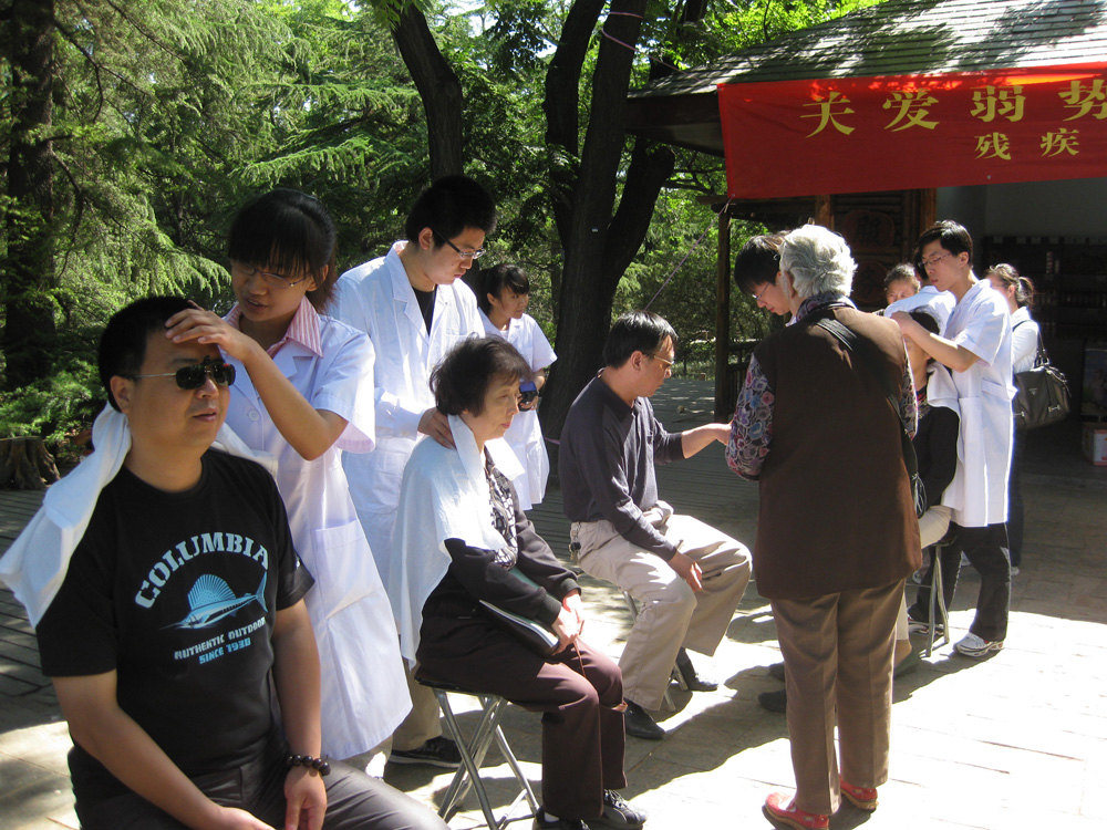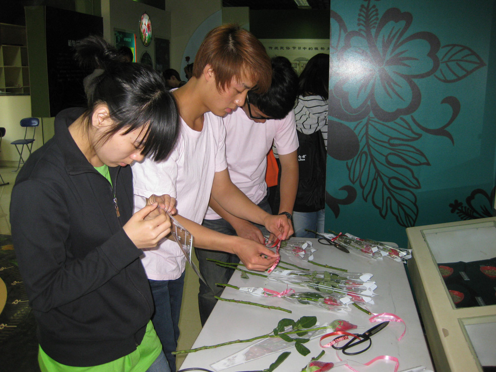 “绿色、阳光、健康”——真情系列活动是植物园与北京植物学会、北京联合大学特殊教育学院第三次联合举办的关注特殊人群的活动。北京联合大学特教学院聋人园林技术专业30余位大学生在植物园科普实践中心进行了植物知识竞赛、艺术插花比赛;盲人按摩专业学生在游客服务部为广大游客进行了义诊和按摩服务;近30位盲童及其家长在植物园工作人员及特教学院教师的带领下开展了芳香、特殊植物的认知活动。盲人、聋哑大学生们阳光、自信、自强不息、心灵手巧、热心服务社会的精神感动了参与活动的每一个人。
