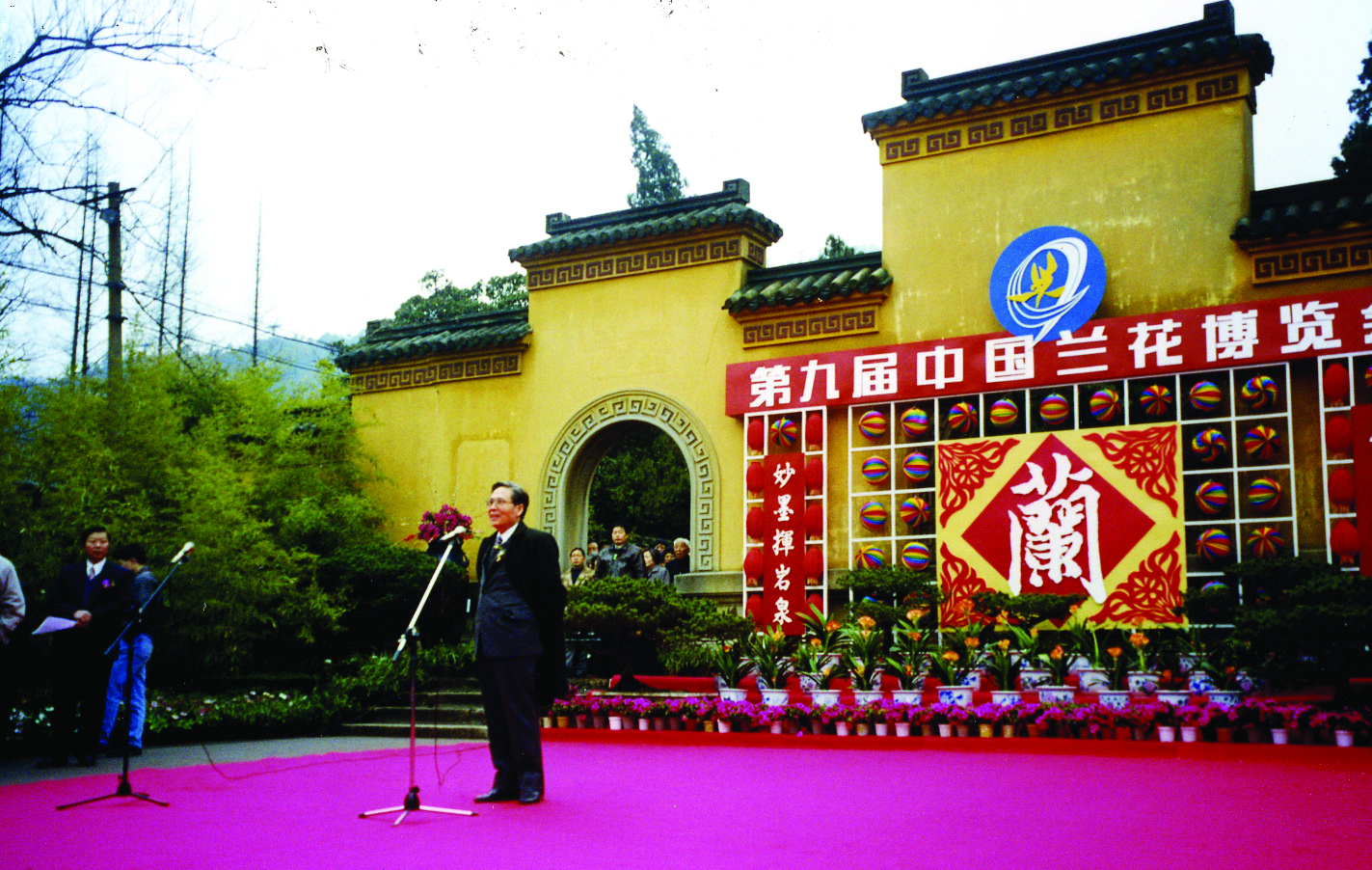1998年,陈心启出席第九届中国(无锡)兰花博览会在开幕式上致辞