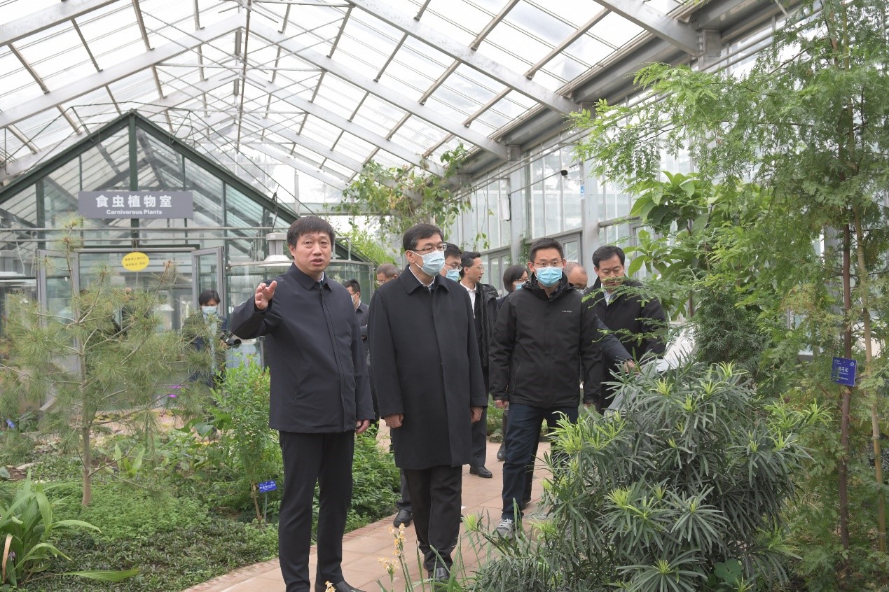 阴和俊一行首先参观了植物所所史馆、系统与进化植物学国家重点实验室、植被与环境变化国家重点实验室和展览温室,了解植物所的发展历史、平台建设情况和最新科研进展,并亲切询问科研人员的工作情况。
