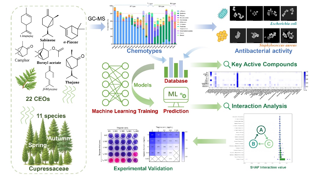 植物精油是一类具有挥发性的天然次生代谢产物,主要由萜烯类、芳香族化合物及其含氧衍生物组成,在食品保鲜、个人护理及辅助医疗等领域具有重要应用价值。与草本植物相比,木本植物精油,特别是柏科精油,具有原料来源稳定、资源储量丰富等优势,还能与林业副产物加工相结合,实现资源的高值化...