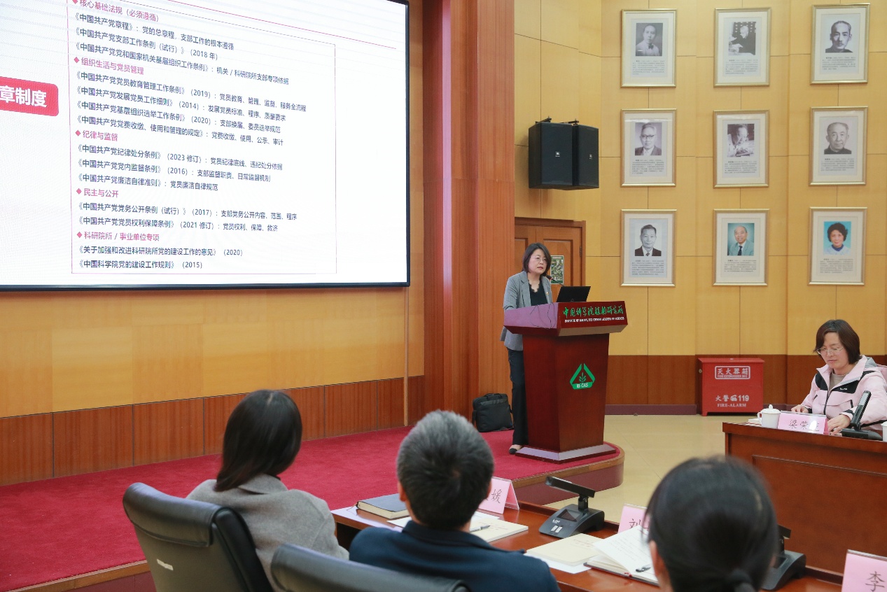 杨永峰作培训动员讲话,他表示,组织委员作为党支部工作的执行者、党员管理的责任人,岗位关键,任务重,要求高。当前正在深入开展树立和践行正确政绩观学习教育,他希望大家要不断加强学习,提升本领,敢担当、善担当,积极主动履职尽责、真抓实干,在干出成效的同时,也把自己培养成既懂科研又懂党建的复合型干部。也希望大家进一步弘扬科学家精神,筑牢思想根基,严守安全、科研诚信等工作红线,切实发挥桥梁纽带作用,为研究所高质量发展凝聚党建合力。